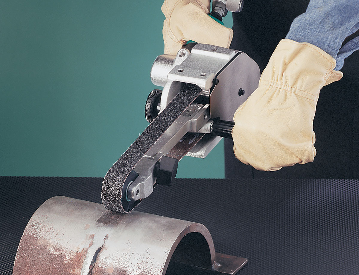Ponceuse à bande à air comprimé 11475 (avec bras de contact 11681, poignée latérale – pour bandes abrasives 25 x 760 mm)